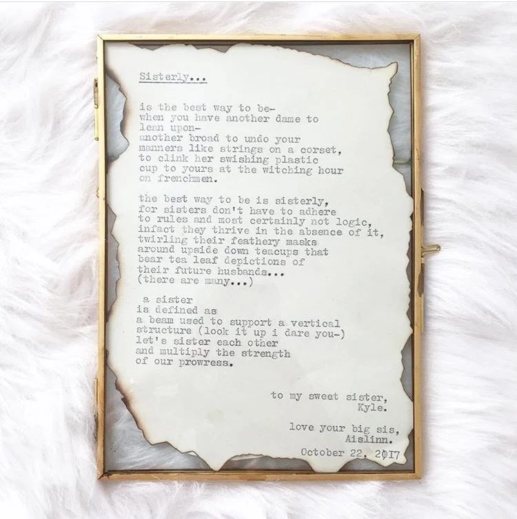 Set an intention, pick a topic, make a request, and I will write a poem for you and mail it through the post! Poems are a meaningful and timeless memento. I have written poems to sanctify anniversaries, weddings, the living, the dead and the Great In-betweens. I also offer tarot readings that come with a customized poem based on your reading, just email me with a special request for a commission. Was there anything I missed?