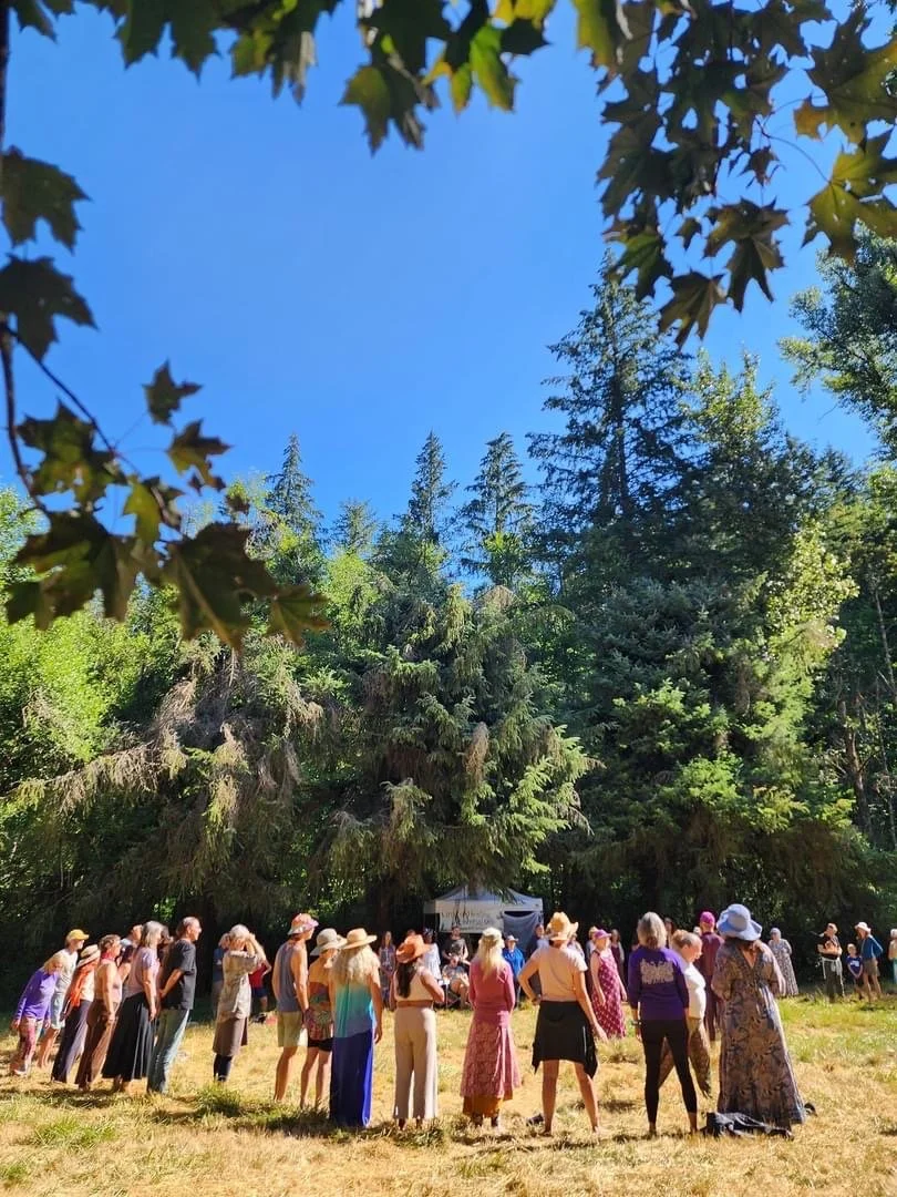 An ancient grove of old Growth Spruce, Cedar and Fir once graced the land that is now Wanderland. The beings of the land remember this time, and still mourn and grieve the loss of this old growth forest. While a new “daughter forest” has emerged and is robust, beautiful and strong- the beings of this land are inviting us into a sacred ceremony of reunion where in through grieving our shared losses of the disconnect from nature, we are able to generate a healing remedy that reverberates out into the collective.